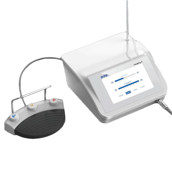 Surgery-X touch Piezo surgery DTEEl piezo Surgery X es una herramienta de corte de alta precisión. La característica que lo diferencia de otras herramientas similares es la micro-oscilación de su punta. La amplitud del movimiento está entre 20 y 100 μm. Esta vibración es invisible a simple vista, y garantiza un corte limpio, preciso y controlado.Precisión de corte. La punta y el tejido óseo están en contacto uniforme, sin rebote. Esto produce un corte más suave, y con una precisión de micrómetros. La incisión quirúrgica mínima es de 3.5 mm de largo y 0,5 mm de ancho, lo que ayudará con un área de operación pequeña, logrando una recuperación postoperatoria más rápida.Componentes del Piezoeléctrico. Este sistema profesional de corte quirúrgico incluye 2 piezas de mano14 puntas, un pedal multifunción que permite el control del aparato, así como la unidad central, con pantalla táctil de 7 pulgadas. En su conjunto, se trata de un aparato diseñado para su uso en el día a día, con una gran cantidad de insertos de calidad que lo dotan de gran versatilidad. Además, permite una desinfección sencilla y rápida, lo que facilita las labores diarias.¿Por qué utilizar tecnología piezoeléctrica en cirugía?
