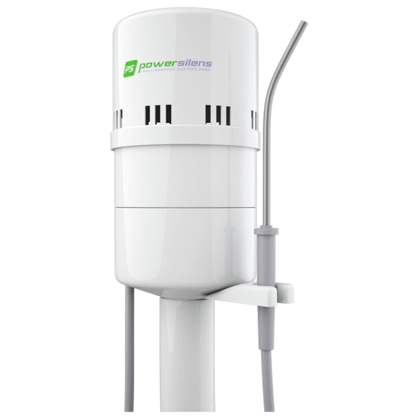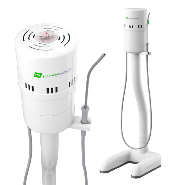 Suctor de alta Es una bomba de vacío para cirugía y otras especialidades en general.El Hemosuctor Power Silens monta un exclusivo motocompresor bicilíndrico libre de mantenimiento, que desarrolla una aspiración de 508 mm (Hg), y emite tan solo 35 dB transformándose en el Hemosuctor odontológico más potente y más silencioso en la actualidad.Posee un sorprendente sistema de aspiración inteligente (Smart Suction System) que detecta la densidad de la sustancia a succionar y aumenta en virtud a la resistencia de la misma. Otra de las características a destacar de este nuevo sistema de succión es la baja polución bacteriana y virósica, ya que poluciona 24 lts. x min. de aire contra los 2.800 lts. x minuto que contaminan los Suctores a turbina.El Hemosuctor Power Silens le permite trabajar 15 veces más tiempo que los suctores convencionales, no contamina el ambiente del consultorio y al poseer descarga automática al desagüe, es libre de mantenimiento. Su alta potencia de succión evita la sobrecarga del compresor dental, dando una mayor vida útil. Trabajar con succión de alto vacío reduce los tiempos de atención en cirugía. El bajo consumo y la marcha continua del Hemosuctor Power Silens le permite trabajar con succión en todo momento reduciendo sus tiempos de atención y otorgándole más beneficios y mayor comodidad a sus pacientes.Power Silens beneficios respecto al uso del suctor del sillón El uso de la bomba de bomba de vacío Power Silens evita la sobrecarga del compresor extendiendo su vida útil.Evita el uso del suctor del sillón odontológico el cual, al no poseer alto vacío, se obstruye en las cirugías ocasionando mayor duración en las intervencionesLos sillones odontológicos poseen un sistema de aspiración que dependen del uso del compresor para poder generar la succión (sistema Venturi). Estos requieren gran cantidad de aire para poder funcionar generando que el compresor marche continuamente por la falta recuperación esto genera inconveniente en la práctica dental como: